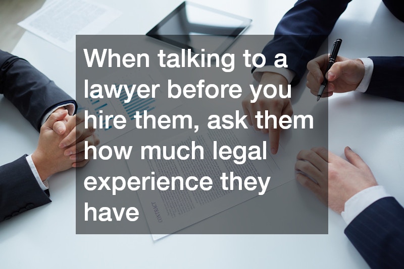 When talking to a lawyer before you hire them, ask them how much legal experience they have. Although a new attorney isn’t necessarily a bad decision, experience is helpful since it will mean the lawyer is familiar with the courts you will be going to. The more experience a lawyer has, the more experience they can share with you.